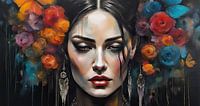 Schilderij Bloemen Portret No. 86.91 - een schilderij uit een reeks schilderijen over dromen, kleuren, vlinders en bloemen.