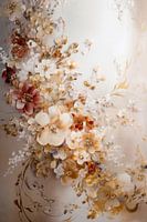Een collectie schilderijen die bestaat uit een reeks bloemencomposities uitgevoerd in een Rococo-stijl, waarbij met name gebruik is gemaakt van kleuren in witte, crème en goudtinten. Deze schilderijen tonen prachtige bloemmotieven die zijn gevangen in weelderige, gedetailleerde composities die kenmerkend zijn voor de Rococo-stijl. De zachte, subtiele kleuren van wit, crème en goud creëren een elegante en verfijnde sfeer, waardoor deze schilderijen een aanvulling zijn op elk interieur.