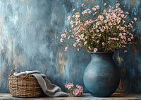 Bloemen Stilleven Blauw | Silence in the Bloom Abyss - stilleven met bloemen in vaas