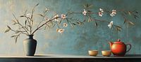 Over ‘Bloemen Vaas | Long Blossom Over Tea’ van Blikvanger Schilderijen