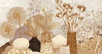 Details: bloemen, vazen, stilleven, moderne kunst, aardetinten, elegant, decoratie, interieurdesign, planten,…