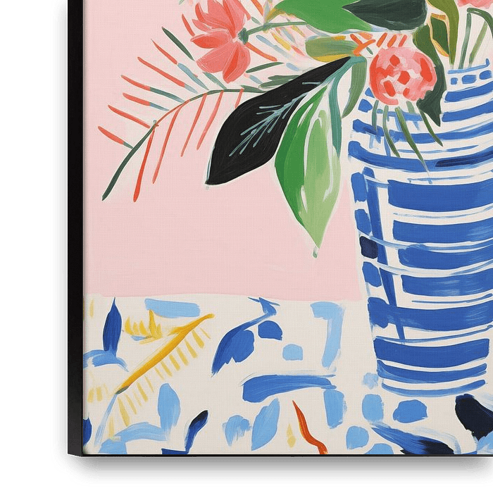 Jouw gekozen kunst als print op doek, gespannen in een aluminium frame. Snel en eenvoudig te verwisselen voor een frisse uitstraling, helemaal zoals jij het wilt.