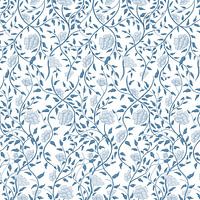 Het schilderij laat diverse bloemen zien die elkaar afwisselen tussen de bladeren en takken. De licht en donker bkauwe bloemen wisselen elkaar af op de witte achtergrond. Het patroon is met de hand getekend. Bloem voor bloem, blaadje voor blaadje.
