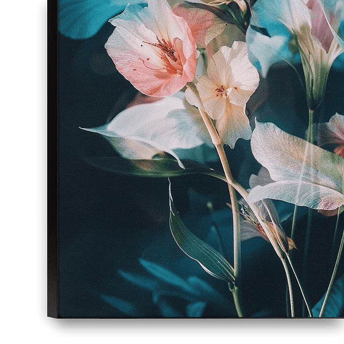 Jouw gekozen kunst op doek, gespannen in een aluminium frame. Snel en eenvoudig te verwisselen voor een frisse uitstraling en helemaal zoals jij het wilt.