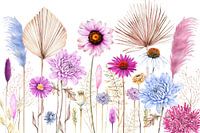 Droogbloemen en bloemen in paars, blauwe en naturelkleuren