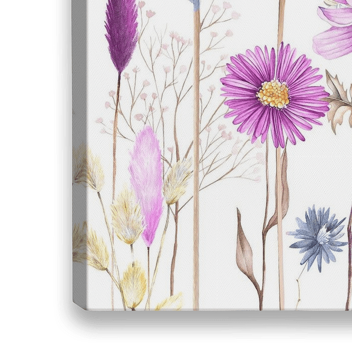 Droogbloemen en bloemen in paars, blauwe en naturelkleuren