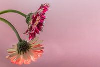 Bloemen droom 2. Twee Gerbera`s in een zachte droge pastel achtige sfeer weergegeven. Kunstlicht zorgt diepte en ruimtelijkheid.