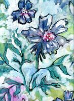 Bloemenschilderij in acrylverf en grafische elementen. Een kleurrijk en expressief bloemenschilderij voor in de woonkamer. Het straalt optimisme en vrolijkheid uit. De schoonheid van de natuur is altijd een onuitputtelijke bron van inspiratie. Bloemenfantasieën zijn kunstig geënsceneerd...bloemen, bloesems, bladeren