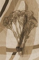 Moderne botanische illustratie in retrostijl. Monotype van een echte plant. Warme aardetinten. Pastel trendy kleuren, organische vormen en lijnen, delicate texturen. Wabi-sabi, Landelijk, Shabby chic, Romantisch, Scandinavisch, Retro, Basic, Design interieurstijl.