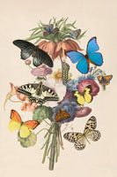 Een combinatie van een tekening van Henriëtte Geertruida Knip met echte vlinders. Oud ontmoet nieuw in een kleurrijk geheel.