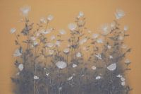 Een warm en licht kunstwerk waarin fijne bloemen zacht oplichten tegen een goudkleurige achtergrond. De luchtige vormen en subtiele lijnen geven het beeld een rustige flow, alsof de bloemen meebewegen met de stilte. Tijdloos, sfeervol en perfect voor een interieur dat zachtheid en warmte mag uitstralen.