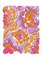 Aan de muur van een kunstgalerij hing een foto van een betoverende compositie genaamd "Gekleurde Bloemen Roze, Paasoranje". De afbeelding toonde een levendige verzameling bloemen in delicate roze tinten, afgewisseld met levendige paasoranje accenten die de aandacht trokken.