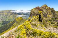 Mooi berglandschap op Madeira in de lente. Het Portugese eiland in de Atlantische Oceaan staat bekend om de vele bloemen. In het voorjaar kleuren de bergen geel van brem die op de steile hellingen groeit.