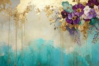 Bloemen in goud en turquoise van Imperial Art House