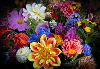 Prachtig felgekleurde bloemen bij elkaar. Wat een heerlijk vrolijk en zonnig boeket. Geplukt in een fantastische tuin. Passend bij diverse interieurs en meerdere trends.