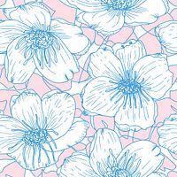 Botanische illustratie met bloemen in pastelkleuren. Lijnkunst bloemen, abstracte bladeren. Naadloos patroon geschikt voor behang. Trendy heldere pastelkleuren.