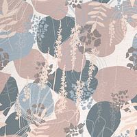 Botanische illustratie met bloemen in pastelkleuren. Half abstracte bloemen en bladeren. Trendy pastelkleuren.
