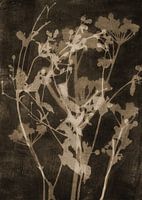 Koop dit abstracte kunstwerk Bloemen in retrostijl. Botanische kunst in warm donkerbruin en wit van Dina Dankers op canvas, aluminium dibond, (ingelijste) fotoprint, behang en ArtFrame, op maat geprint in Fine-Art kwaliteit.