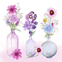 Bloemen in leuke vaasjes gemaakt in aquarel