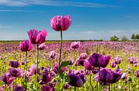 Op het eiland tholen, in de provincie Zeeland worden veel bloemen geteeld voor zaadproductie. Aan het begin van de zomer ziet het er zeer kleurrijk uit met vele bloemenvelden in verschillende kleuren. Hier zien we roze klaprozen.
