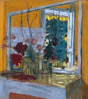 Hij is echter minder geïnteresseerd in het boeket zelf dan in de manier waarop de krullende stelen hem in staat stellen de compositie te verstoren, onderbroken door de rechtlijnige vormen van de schoorsteenmantel, de spiegel of de erker die erin gereflecteerd wordt. De kunstenaar koos ervoor om dit raam te openen op een tuin die overspoeld wordt met licht, wat het ware onderwerp van het beeld is. Het is meer dan een voorstelling van een eenvoudig binnentafereel en maakt deel uit van het onderzoek van de kunstenaar naar licht en kleuren, waarmee hij rond 1900 begon.