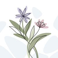 Dit elegante schilderij laat twee bloemen zien in het roze en paars met groene bladeren op de achtergrond. Deze illustratie is gemaakt in een moderne en minimalistische stijl. Dit in combinatie met de lichte pastel kleuren geeft het een frisse uitstraling. Rozen, tulpen, lelies, dahlia’s, madeliefjes, klaprozen: iedereen heeft een favoriete bloemensoort.