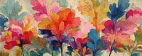 Bloemen schilderij | Vrolijke bloemen in felle kleuren - Op dit bloemen schilderij zie je een vrolijke compositie van kleurrijke bloemen, met een mix van felle tinten zoals roze, oranje en blauw, die samen een levendige en abstracte uitstraling creëren.