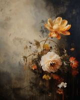 Bloemen tegen een abstracte achtergrond in wabi-sabi stijl. Een bijzondere blikvanger voor je interieur waar je naar blijft kijken. Kies zelf het formaat en materiaal bij dit werk. In de traditionele Japanse esthetiek is wabi-sabi een wereldbeeld waarin de acceptatie van vergankelijkheid en imperfectie centraal staat. De esthetiek wordt soms beschreven als een waardering voor schoonheid die "onvolmaakt, vergankelijk en onvolledig" van aard is. Het komt veel voor in vele vormen van Japanse kunst.