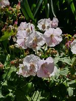 Een macrolens was nodig om de schoonheid van dit moment vast te leggen. Een witte tuingeranium op een zomerse dag. een moment waar we meestal gewoon bij langslopen.