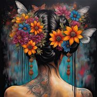 Schilderij Vlinders en Bloemen No. 87.57 - een schilderij uit een reeks schilderijen over dromen, kleuren, vlinders en bloemen.