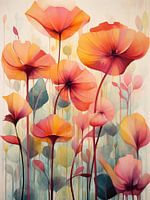 Dit werk is een levendige en expressieve interpretatie van een klassiek bloemstilleven, barstensvol warme, uitbundige kleuren. Dieprood, zonnig geel en vurig roze vormen een weelderig boeket dat onmiddellijk de aandacht trekt en van de muur spat. De bloemen zijn niet in detail uitgewerkt, maar gesuggereerd met krachtige, textuurrijke vormen die het werk een enorme dynamiek en een bijna tastbaar karakter geven. Dit kleurrijke geheel steekt prachtig af tegen een ingetogen, donkere achtergrond, waardoor de bloemen nog meer lijken te stralen. Het is een werk dat pure levensvreugde en energie uitstraalt, een perfecte combinatie van klassieke charme en moderne flair. Een tijdloze blikvanger die elke ruimte direct opfleurt.