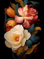Dit kunstwerk past perfect in een woonkamer, slaapkamer of zelfs een lichte keuken en brengt een vleugje natuur en frisheid in je interieur. De warme en harmonieuze kleuren maken het een uitstekende keuze voor liefhebbers van botanische elementen en vrolijke kleuren. Met dit werk haal je niet alleen een visueel aantrekkelijk element in huis, maar ook een stuk dat vreugde en vitaliteit uitstraalt, waardoor je elke dag opnieuw kunt genieten van de tijdloze schoonheid van bloemen.