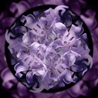 Als basis is de wilde hyacint gefotografeerd, de foto is verder bewerkt tot een prachtig spel tussen de bloemen de vormen en de paarse kleur.