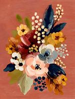 Een elegant schilderij van een bloemenboeket in zachte roze en blauwe tinten. Perfect om warmte en harmonie in huis te brengen.