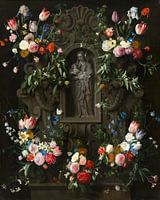 Bloemencartouche met Mariabeeld, Daniël Seghers, Thomas Willeboirts Bosschaert