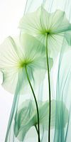 Dit muur kunstwerk uit de 'Bloemendans Botanical' collectie ademt een serene sfeer uit met zijn minimalistische en transparante compositie. De subtiele groene tinten vormen de hoofdkleur en creëren een gevoel van rust en verbondenheid met de natuur. Het zachte licht dat door de bladeren schijnt, werpt een delicate gloed op de omgeving, waardoor een kalme en vredige ambiance ontstaat.