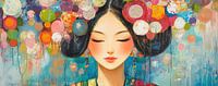 Koop dit moderne kunstwerk Bloemenkrans | Serene Vrouw met Kleuren van Blikvanger Schilderijen op canvas, aluminium dibond, (ingelijste) fotoprint, behang en ArtFrame, op maat geprint in Fine-Art kwaliteit.