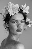Koop dit portret Bloemenkrans en sproeten in zwart en wit van Poster Art Shop op canvas, aluminium dibond, (ingelijste) fotoprint, behang en ArtFrame, op maat geprint in Fine-Art kwaliteit.