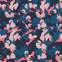 Moderne botanische kunst geïnspireerd door de Scandinavische natuur. Prachtige semi-abstracte bloemmotieven in een retro geïnspireerd kleurenpalet. Naadloze herhaling - kan worden gebruikt als behang of stof. Grafische collage van bloemknoppen, vormen en bladeren. Romantisch, Boheems, Retro, Eclectisch, Nieuw Landelijk, Scandinavische woonstijl.