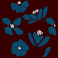 Eenvoudige semi-abstracte bloemmotieven in retro geïnspireerd kleurenpalet.