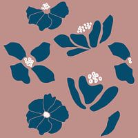 Eenvoudige semi-abstracte bloemmotieven in retro geïnspireerd kleurenpalet.