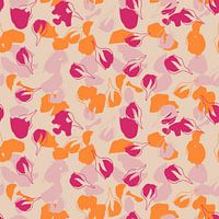 Moderne botanische kunst geïnspireerd door de Scandinavische natuur. Prachtige semi-abstracte bloemmotieven in een retro geïnspireerd kleurenpalet. Naadloze herhaling - kan worden gebruikt als behang of stof. Grafische collage van bloemknoppen, vormen en bladeren. Romantisch, Boheems, Retro, Eclectisch, Nieuw Landelijk, Scandinavische…