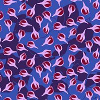 Prachtige semi-abstracte bloemmotieven in een retro geïnspireerd kleurenpalet. Naadloze herhaling - kan worden gebruikt als behang of stof. Grafische collage van bloemknoppen, vormen en bladeren. Romantisch, Boheems, Retro, Eclectisch, Nieuw Landelijk, Scandinavische woonstijl.