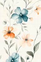 Delicate bloemen dansen zachtjes over een lichtgekleurde achtergrond en geven elke kamer een frisse lichtheid. De harmonieuze kleurencombinatie van delicaat blauw en zachte abrikoostinten straalt rust en harmonie uit. Dit ontwerp is ideaal voor de slaapkamer of een uitnodigende keuken en creëert een ontspannen sfeer die uitnodigt om te blijven hangen.