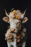 Bloemenpracht en Sereniteit - Koe met Zachte Bloemenkrans van Eva Lee