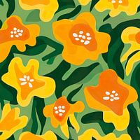 Breng warmte en vrolijkheid in je interieur met deze prachtige bloemenprint! De speelse gele en oranje bloemen, gecombineerd met weelderig groene bladeren, geven elke ruimte een frisse en artistieke uitstraling. De moderne, abstracte stijl doet denken aan de levendige knipselkunst van Matisse en past perfect in een eigentijds of…