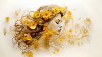 Het schilderij neemt je mee naar een serene wereld waar de rustige ademhaling van de natuur zich vermengt met de innerlijke vrede van een vrouw. In een zijdelings portret, met gesloten ogen, wordt haar gelaat vastgelegd tegen een achtergrond van zacht wit en beige, als een symbool van rust en contemplatie. Haar aanwezigheid wordt omhuld…