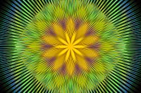 Dit werk kwam tot stand door verschillende kleuren te vervormen door middel van caleidoscoop effect en straaleffect.