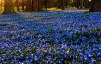 Voorjaar in Nederland met een mooi blauw bloementapijt van de Scilla, of sterhyacinth. De bloemen bloeien in de vroege lente.