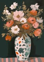 Een kunstdruk van een vaas met bloemen erin, gemaakt als schilderij.